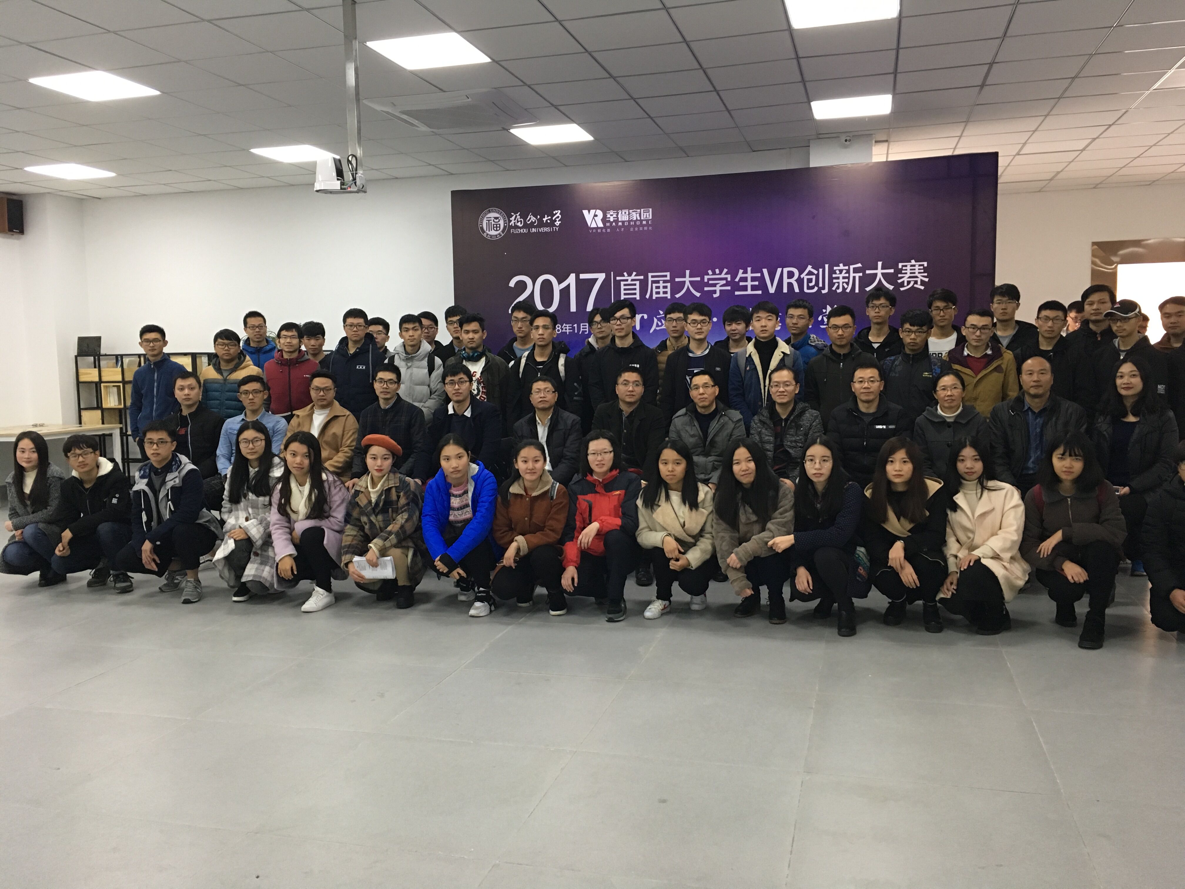 新闻中心讯/1月6日下午,由福州大学与幸福家园VR孵化器联合举办的“幸福家园杯”福州大学首届VR创新大赛在福州大学三千创客空间圆满落幕。