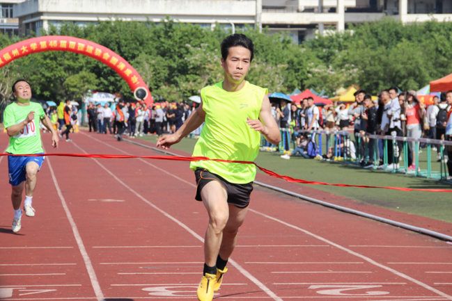 比赛分为四组进行。第一组中,生工学院的选手王群吸引了无数观众的注意,在最后50米进入全面冲刺阶段,与其他选手之间的距离愈来愈大。第四组比赛中,第二跑道上生工学院的张志雄老师作为福州大学前田径队队长,无疑是本组比赛的焦点,展现出了非凡的实力,以碾压式的胜利夺冠。
