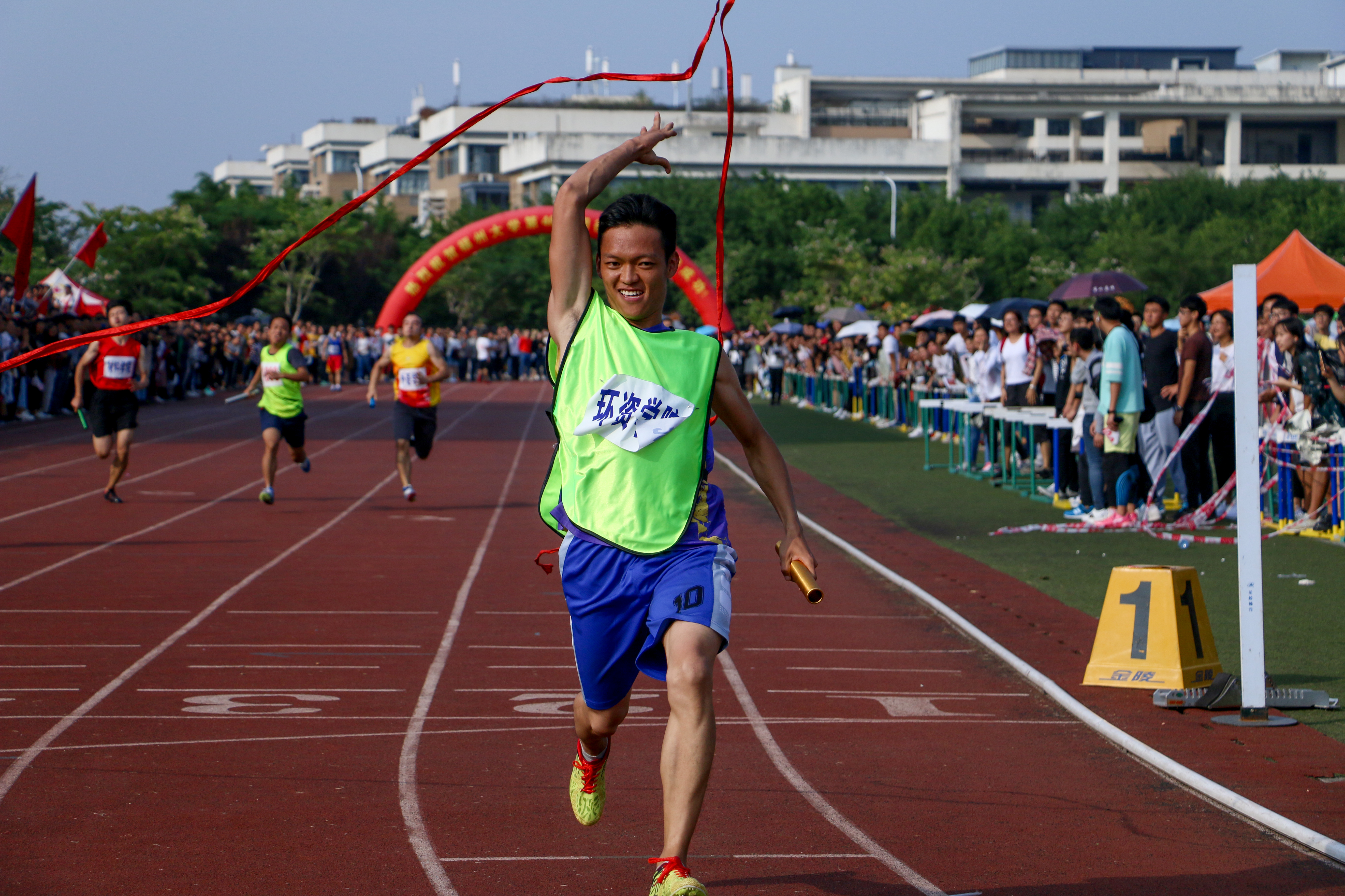 4×100米接力赛考验的不仅是每一位运动员竞技实力,还有团队间的默契协作。每一次的传棒,都紧紧牵动所有运动健儿们和观众的心。比赛伊始,建筑学院代表队一马当先,海洋学院代表队和人文学院代表队紧随其后。随着接力棒的传递,鼓声、锣声停了,观众们的心也悬到了嗓子眼,全场凝神屏息以待。最后一棒环资学院的运动员迅猛发力,凭借其强劲的爆发力率先冲向终点。