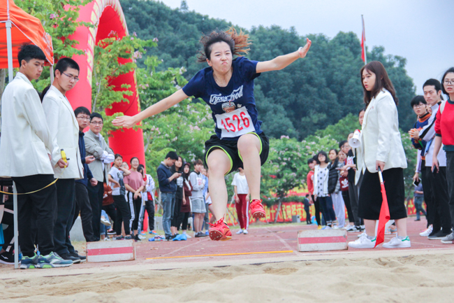 赛前大家气势满满,不断试跳,调整起跳的最适点,细心地系紧鞋带,做热身运动放松身体,为比赛做好最充分的准备。比赛在观众的欢呼声中进行着,各个选手挥动双臂,奋力奔跑,为紧接下来的跳跃蓄力。运动员或抿紧双唇,或嘴巴微张,眼睛直视前方,纵身跃入沙坑,引起了观众一阵阵欢呼与加油呐喊。