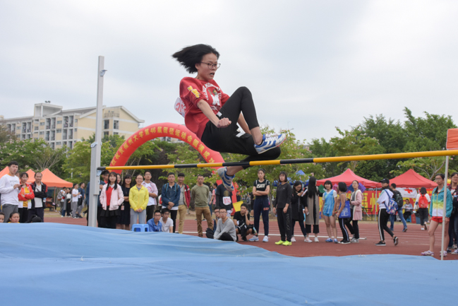 跳高是一项极富技巧性的运动,除考验运动员身体素质外还对动作及起跳时机的把握要求甚高。本次比赛中每完成一个高度上升3厘米,现场气氛随之变得愈加紧张。深呼吸、助跑、加速、起跳、越杆一系列动作一气呵成,机械学院许冰冰同学娴熟又标准的动作博得场上观众一片欢呼声。而来自数计学院的陈姣伶凭借着轻盈的身姿和娴熟的技能战胜众多强劲的对手,获得第二名的佳绩