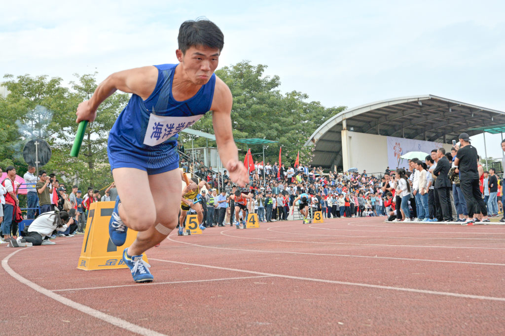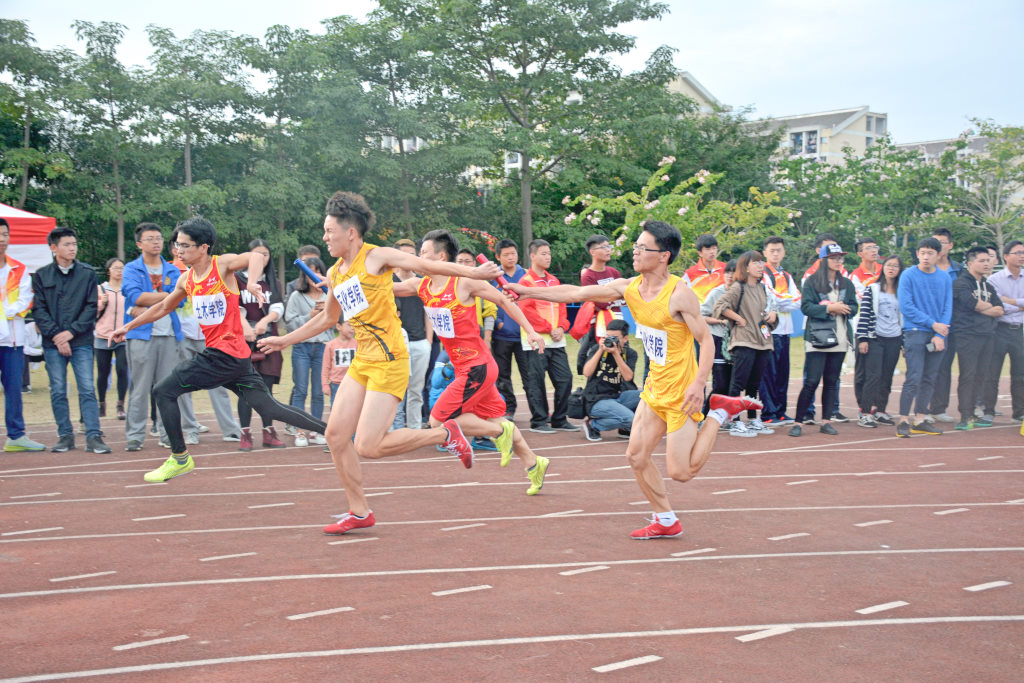 新闻中心讯/11月12日下午14点40分,福州大学第45届田径运动会最后一场比赛——男学甲4×100米带着众人的期待在一区操场环形跑道上准时开跑,共有10个学院参与到这场最后的角逐。时间一点点流逝,全场的气氛愈加紧张,观众们安静下来迎接这最激动,最后一场的赛事。“预备”,枪声拉响,第一棒运动员像蓄满了能量的箭离弦而出,在加油声,呐喊声,鼓声,音乐声中,各棒的运动员进行对接。来自石化学院的最后一棒运动员,领先其他学院,冲向终点时张开双臂,终点处爆发出一阵欢呼,为此次的校运会画上了完美的句号。