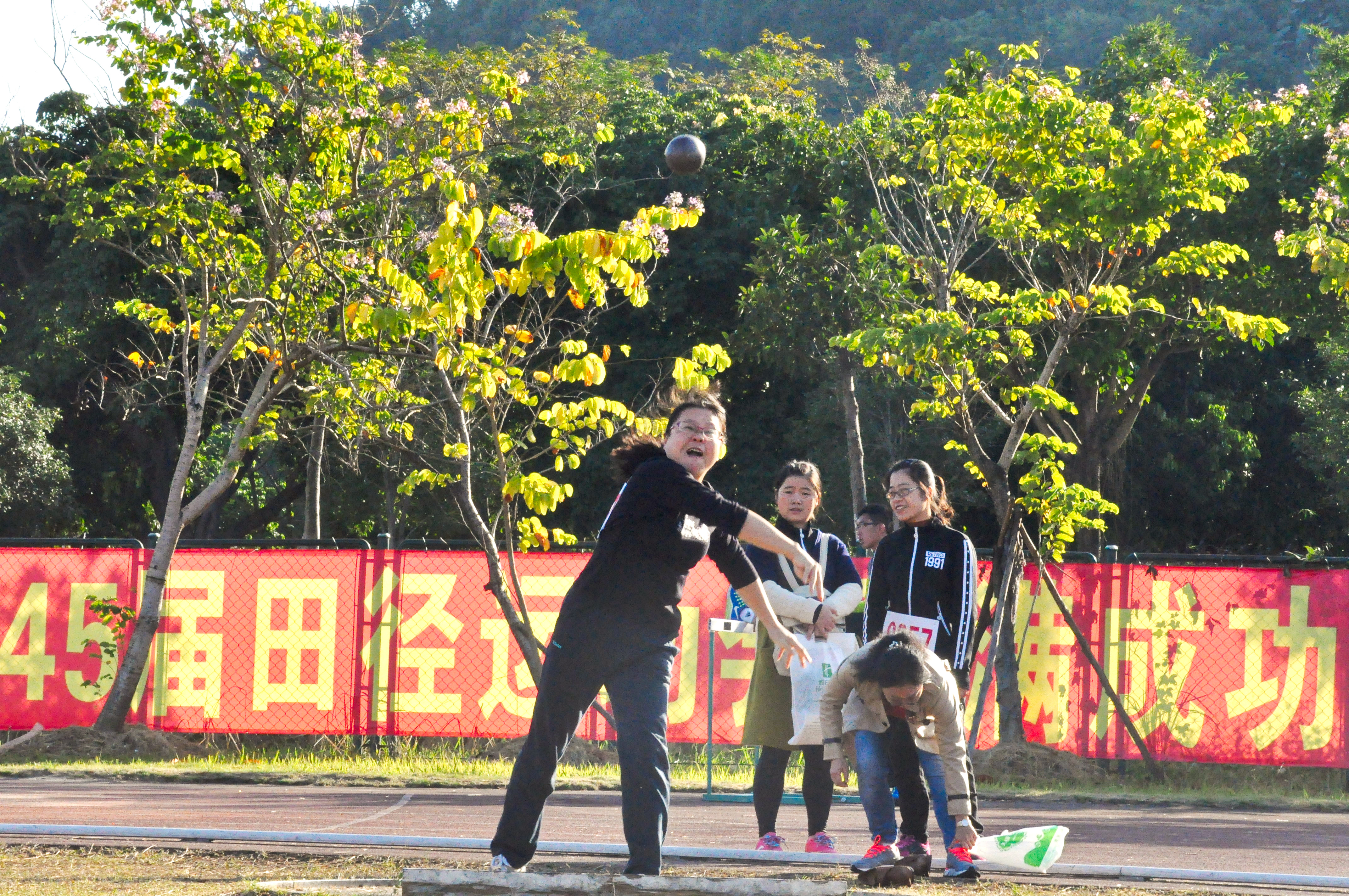 新闻中心讯/11月11日上午八时整,女教青铅球比赛在一区田径场东南区开始,共有来自不同学院的15名老师参加比赛。