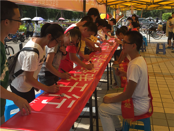 新闻中心讯/9月20日据悉,为响应教育部针对国家网络安全主题宣传的号召,由福州大学学生工作处主办,福州大学易班工作站联合学生社区委员会共同承办的国家网络安全日主题活动 “留下一个名,带走一种文明”签名活动及“网络安全知识妙语趣答”竞猜活动在福州大学旗山校区火热展开。在这里不仅可留下你的大名,还可 “头脑风暴”秀智商,获得小礼品。现场活动热烈的气氛及有趣的形式不仅吸引了广大学生,短短一个多小时有300余人参与其中,更有省教育厅、校学生处老师莅临现场进行指导。