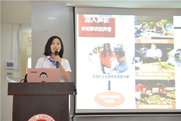 据悉,共14支重点队伍参与本次实践优秀项目的评选,为大家带来了精彩纷呈的汇报展示。电气学院赴屏南暑期社会实践队实践队以改编版《好想你》开场,用“电气和谐号”动车将大家带向屏南实践的四大站点;法学院实践队以手工绘制电影画卷的形式展现了他们“弘法治争创中国梦,扬泰宁生态十三五”主题;机械学院的“少小离家记-缘起邵武”暑期实践队在实践中以角色互换的体验式德育教育,让大家充分感受邵武家教门风的独特魅力;赴泰宁县“互联网+”山区乡镇发展调研的研究生实践队中,7名研究生开发了状元笋竹方案,用“互联网+”新模式促进地区扶贫项目;特教学校筑梦关爱志愿服务实践队第5年走近福清市的特教学校,与特校的孩子们亲密互动,和孩子们一同画下带着梦想与心愿的百米画卷……