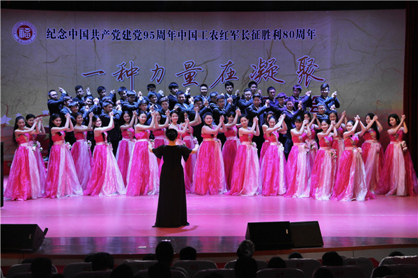新闻中心讯/6月7日晚,为纪念中国共产党建党95周年和中国工农红军长征胜利80周年,福州大学主办“一种力量在凝聚”福州大学合唱专场音乐会。福州大学党办校办主任林建、党委组织部部长林生以及党委宣传部部长林志凯莅临现场。