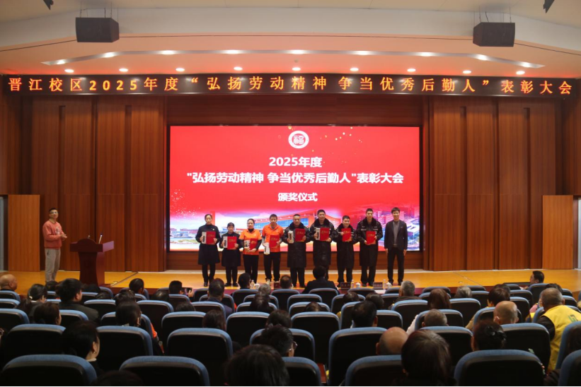 大会在热烈掌声中圆满落幕。本次表彰既是对晋江校区2025年度后勤工作的系统总结,更是一次凝聚共识、鼓舞干劲的动员。后勤系统全体员工将以此次大会为新起点,牢记嘱托、见贤思齐,自觉弘扬劳动精神,在平凡岗位上续写不平凡的坚守,以更优质、高效、暖心的服务,为晋江校区的高质量发展保驾护航。(文/林志生 图/巫俊)