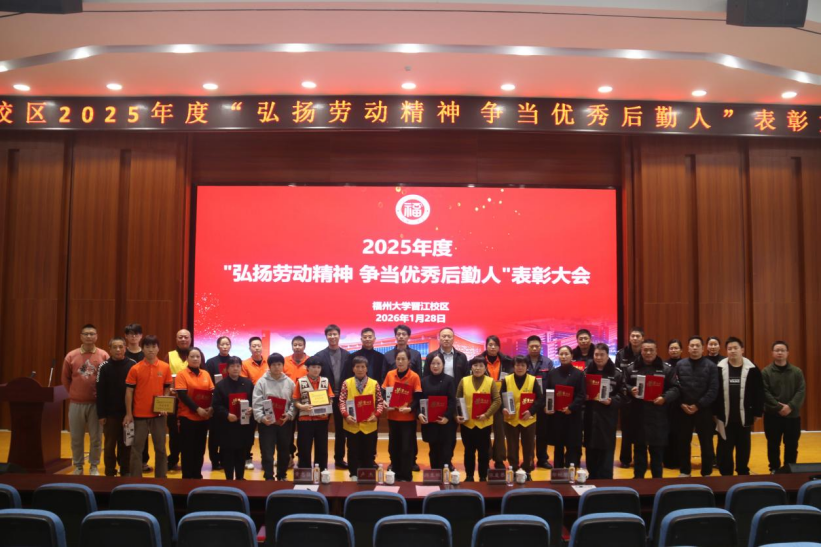 融媒中心讯/1月28日下午,福州大学晋江校区2025年度“弘扬劳动精神 争当优秀后勤人”表彰大会在学术报告厅举行。晋江校区管委会常务副主任兼先进制造学院与海洋学院党委书记游生辉,先进制造学院与海洋学院党委副书记卢杰、副院长张友恭出席大会,相关职能部门负责人、后勤系统全体员工及第三方合作单位代表共同参会。