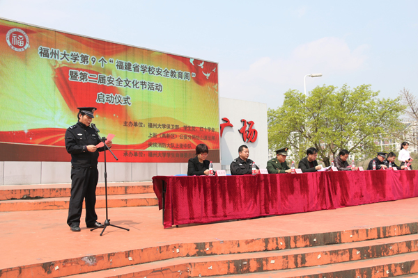 新闻中心讯/3月31日上午,福州大学第9个“福建省学校安全教育周”暨第二届安全文化节活动启动仪式在青春广场举行,校保卫部、学生处、红十字会、上街(高新区)公安分局怡山派出所、闽侯县消防大队上街中队等单位负责人出席启动仪式。
