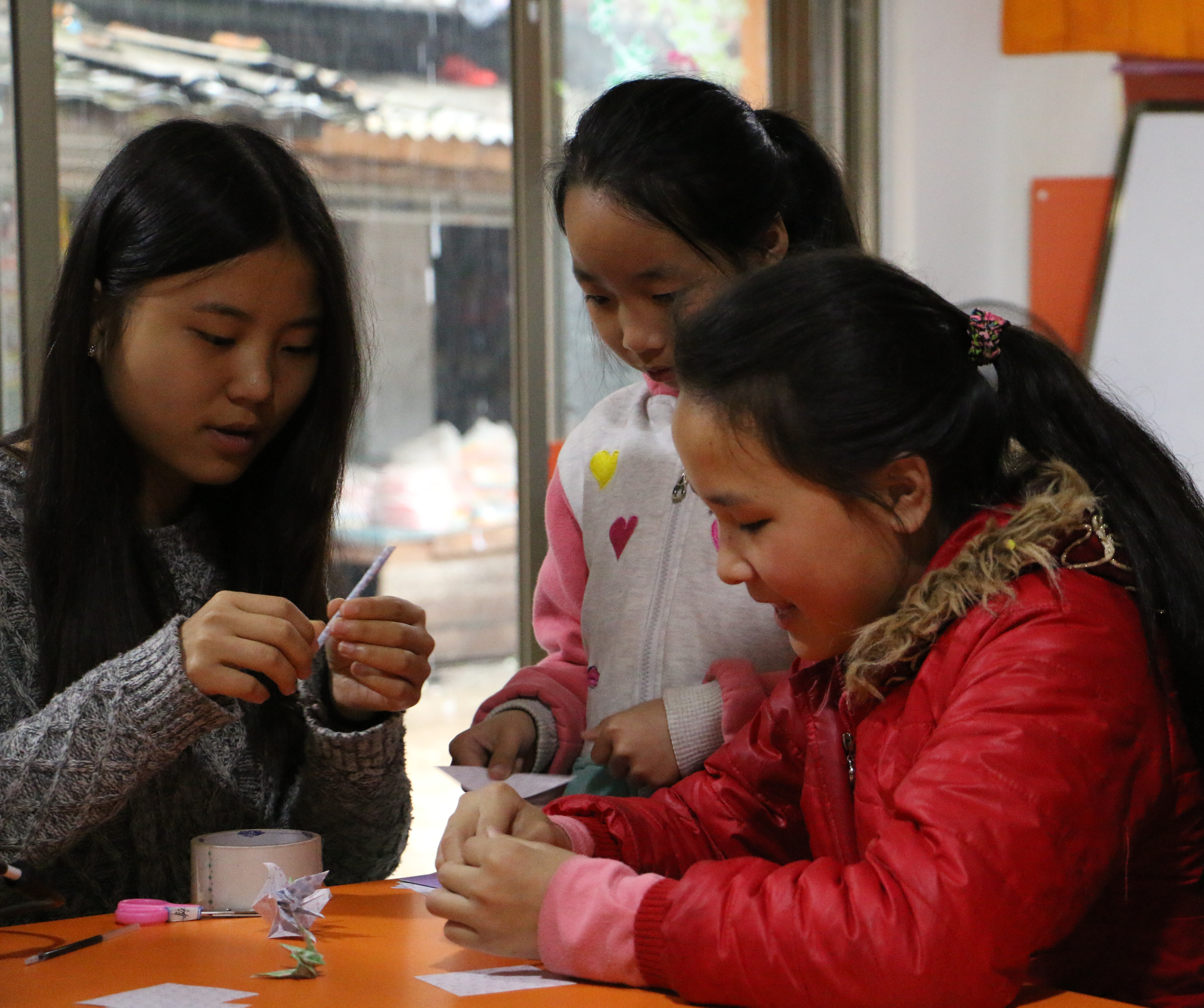 “大学之美”的课程讲完,仅7岁的刘利清拉住主讲叶丽萍的手,满眼憧憬又认真地说道:“姐姐,我也要上大学,上你们的大学”。看着孩子们愉快地玩着折纸、跳棋、拼图等各种游戏,服务站的负责义工超然觉得很欣慰,“他们都是外来工子女,平时也不爱说话,多亏了这些大学生的关爱和照顾,才能玩的这么开心。”