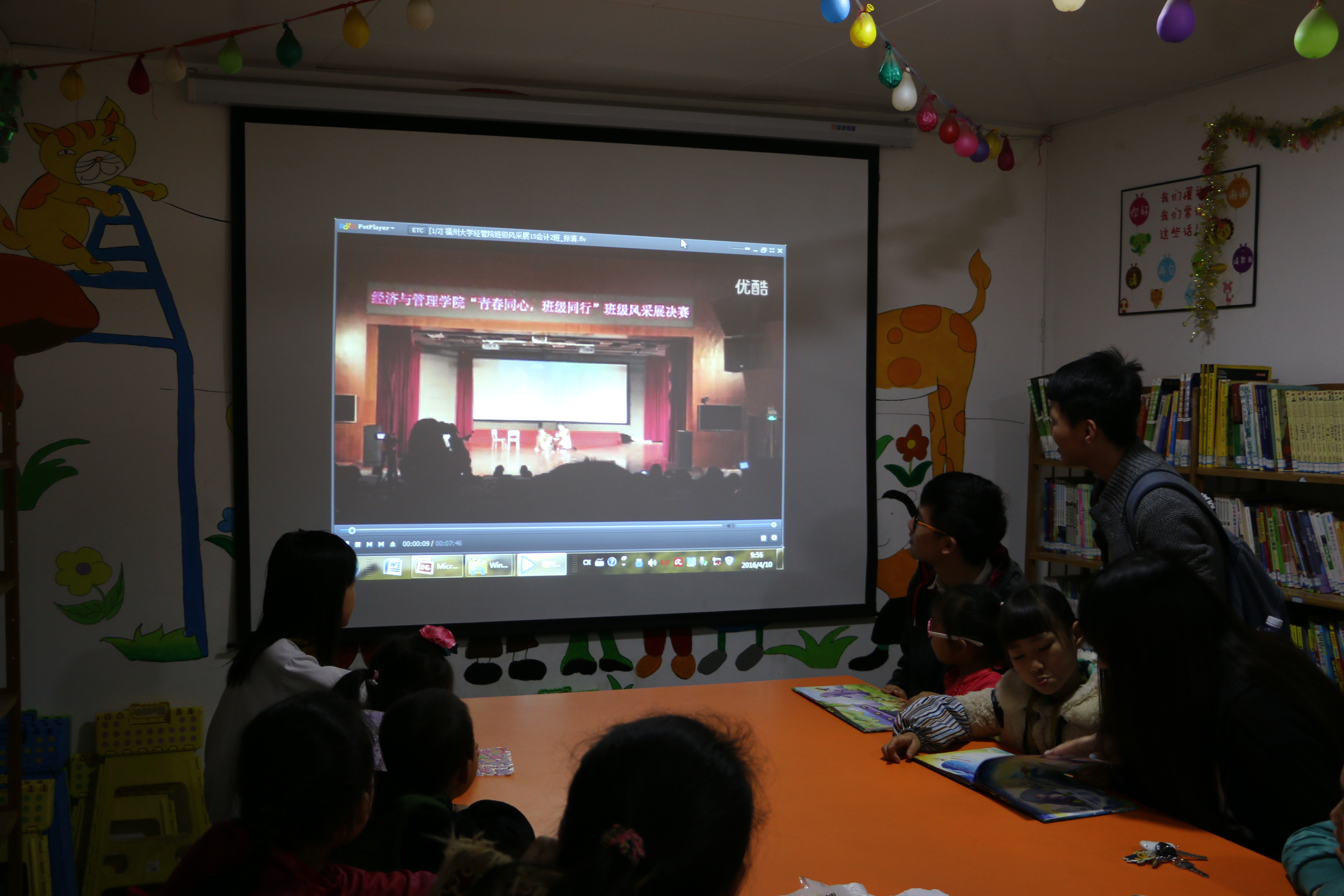 新闻中心讯/“你们觉得大学是什么样子的呢?”“我知道我知道!肯定是很自由的,可以学到很多知识”、“应该是很累的,要做很多事学很多东西呢”……一群七八岁的小学生争先恐后地道出他们想象中的大学的样子。玻璃门外大雨滂沱,而小小的房子里却热闹温馨。