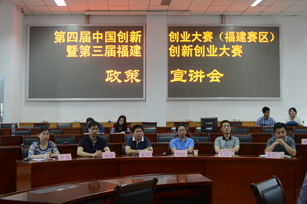 新闻中心讯/2015年6月4日下午,为做好第四届中国创新创业大赛(福建赛区)暨第三届福建创新创业大赛报名工作,福州大学教务处组织举办了第四届中国创新创业大赛(福建赛区)暨第三届福建创新创业大赛政策宣讲会,邀请本届大赛有关负责人到福大经济与管理学院经管中楼418室为参赛同学进行相关政策解读。