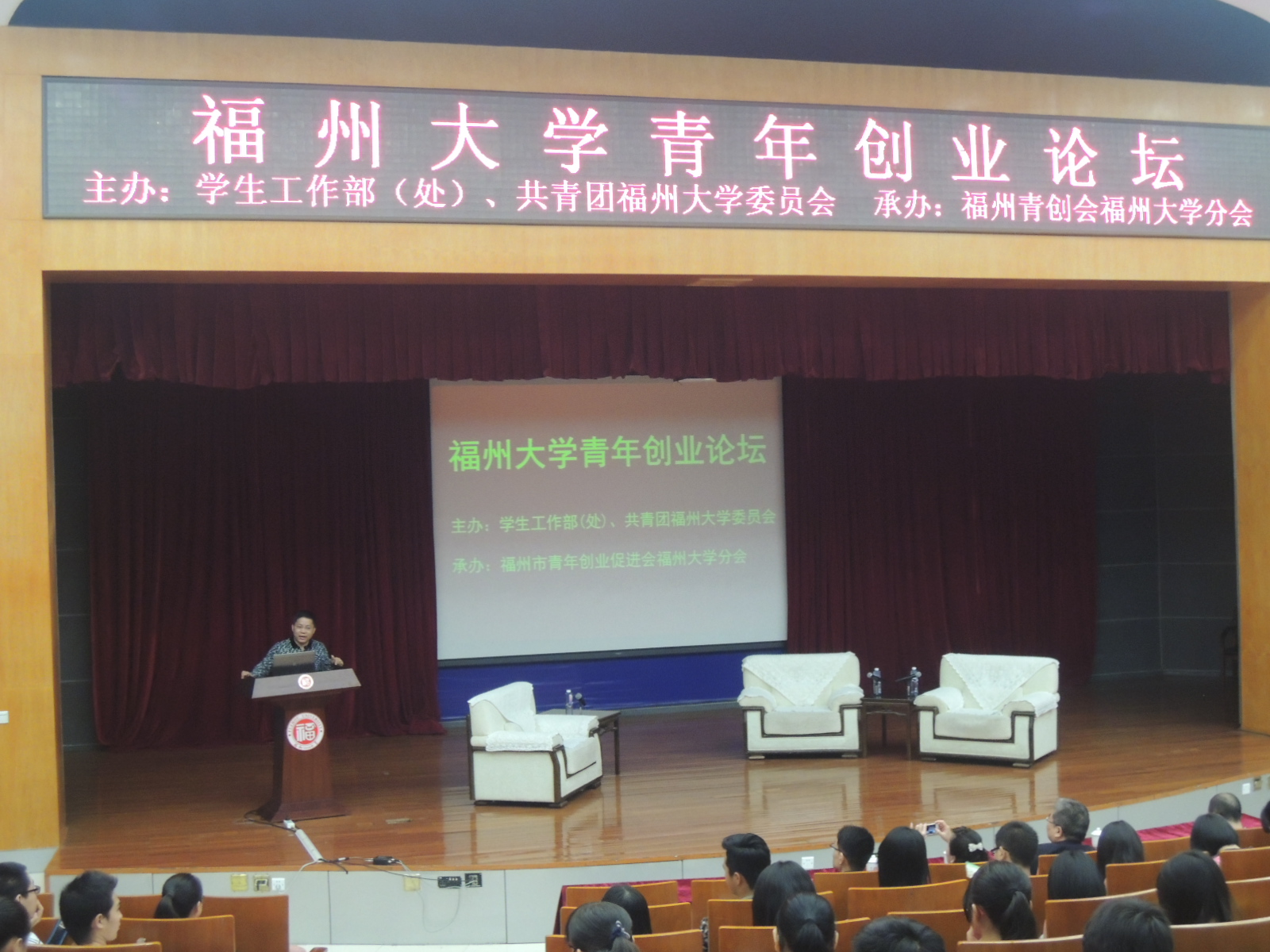 新闻中心讯/5月4日晚,福州大学青年创业论坛在旗山校区图书馆明德厅顺利举行。论坛邀请到福州市青年创业促进会会长、福建光阳蛋业董事长余劼,福州市青年创业促进会副会长、汇银资本董事长陈锐华担任主讲嘉宾。福大党委陈少平副书记出席论坛,学生工作部(处)、校友会、校团委负责人以及学院师生代表参加了此次论坛活动。