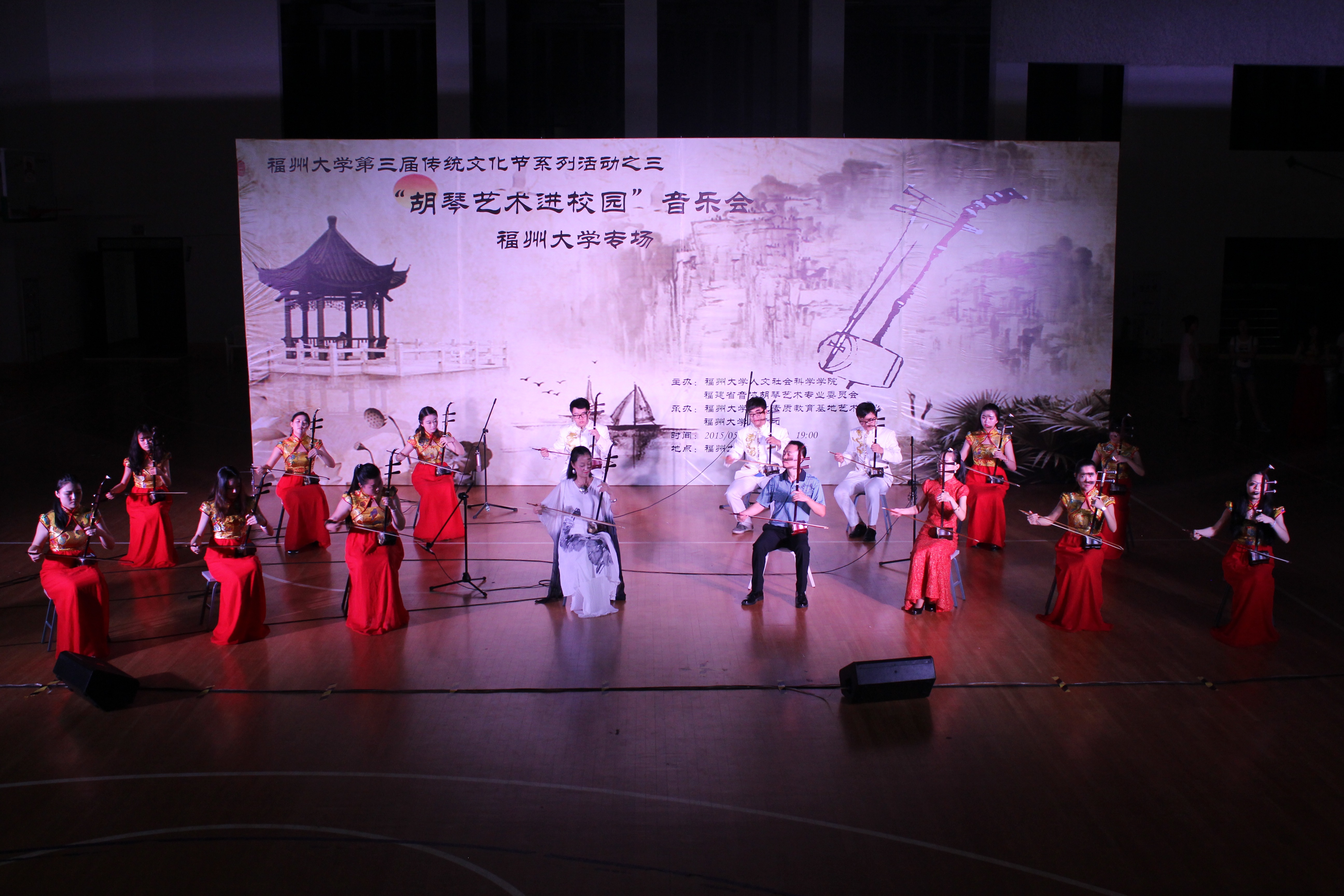 本场音乐会以福州大学民乐团的《快乐的小乐队》拉开帷幕,各位艺术家们倾情演奏的《二泉映月》、《苏三起解》、《塞外情思》、《战马奔腾》等著名胡琴曲目,为听众带来了一次崭新的听觉体验。音乐会还穿插介绍了胡琴的相关知识,让广大师生对传统音乐有更深入的了解,营造了校园良好的艺术和人文氛围。