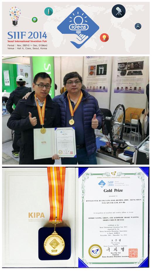 新闻中心讯/11月27日至12月1日,2014首尔国际发明创新设计展在首尔隆重举行。福大厦门工艺美院应大会邀请,组队参加了此次设计展。数媒系林建德教授和何俊博士的作品《Effort Saving ,Green ,And Automatic Brake Warning Lights Used In Bicycle》在众多参赛作品中脱颖而出,最终获得金奖。这也是厦门工艺美院首次组织专利项目赴国外参加国际设计展并获奖。