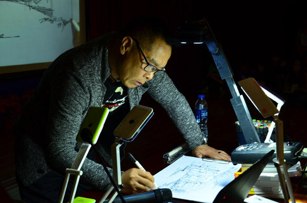 尚龙勇老师现场作画 福大记者团 薛晨韬 摄