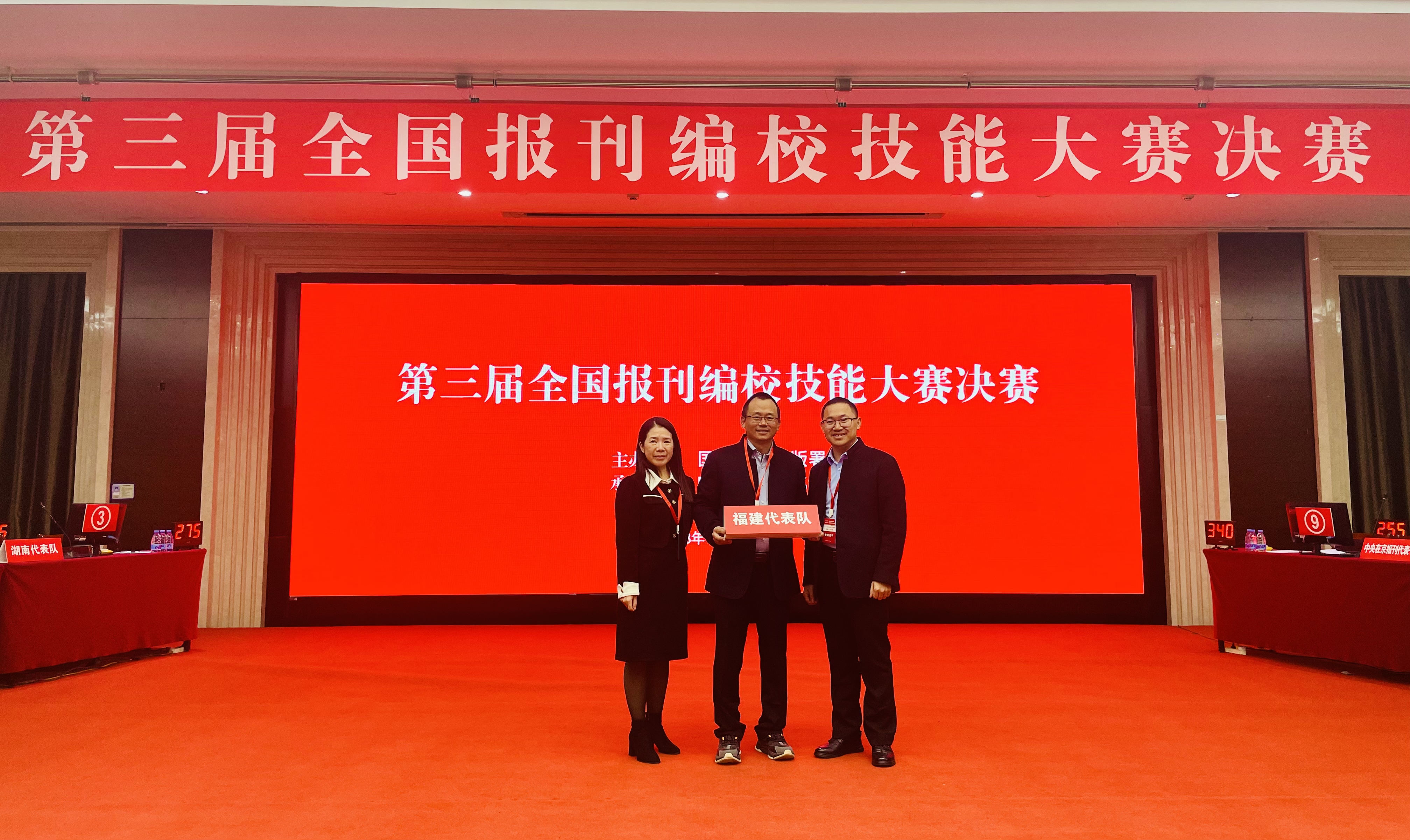 融媒中心讯/由国家新闻出版署主办的第三届全国报刊编校技能大赛决赛12月25日在京举行。经过激烈角逐,由福建日报社黄爱华、福建教育杂志社李武和《福州大学学报》(哲社版)编辑部陈未鹏组成的福建代表队发挥出色,以优异成绩在36支决赛代表队中荣获全国二等奖。