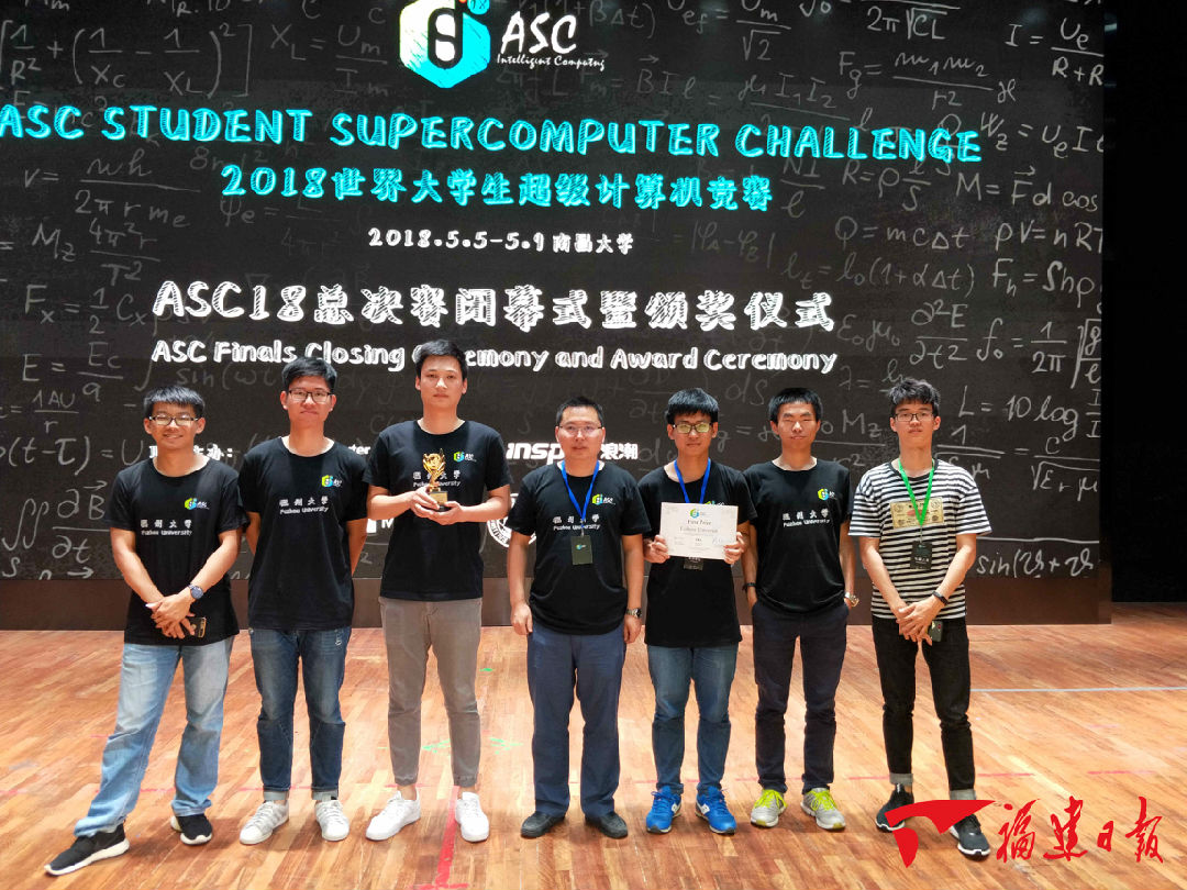 福建日报APP-新福建5月11日讯 (福建日报记者 张颖)日前,2018世界大学生超级计算机竞赛(ASC2018)总决赛在江西南昌大学圆满落幕。经过5天的激烈角逐,福州大学超算代表队作为福建省高校首次进入总决赛的队伍,荣获全球总决赛一等奖,并在HPL性能测试项目上以每秒33.7万亿次浮点运算性能排名第七,打破了ASC17创造的31.7万亿次/每秒的赛会纪录。HPL即High Performance Linpack,是一项用于测试高性能计算机系统计算性能的基准测试。通过该测试计算出的峰值越高,从一个方面上代表该计算机或系统的计算能力越强。据队员介绍,在比赛中,团队通过更改硬件配置和修改HPL程序各项参数的方式,使他们的计算机集群在限定的功耗条件下,测试出系统的计算峰值。