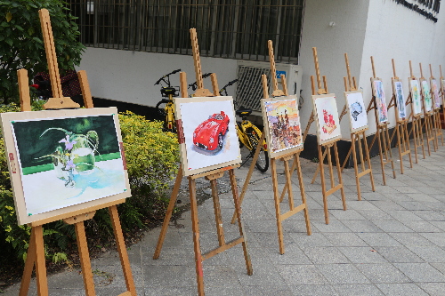 据了解,展出的30余幅作品皆为创意与设计系学生设计色彩课的作业。“这些画有些是用彩铅加素描的笔法,有些是水彩混合水渲染而成。最有特色的就是马赛克画,把画作分成一个个小的马赛克点,每个马赛克点所需要的水粉颜料颜色都不同,虽然创作过程繁琐,但画作呈现的状态是最好的。”创意与设计系学生池晓玲介绍说。