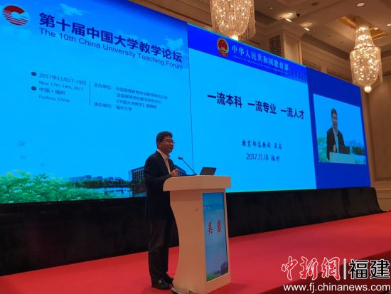 中新网福州11月19日电(李洋)18日,第十届“中国大学教学论坛”在福州举行。教育部高等教育司司长吴岩、中国高等教育学会副会长张大良、福建省教育厅副厅长陈国龙、福州大学校长付贤智等领导出席会议,与全国高等教育领域多位知名专家、学者共同研讨一流本科教学并聚焦课程及教学方法改革。