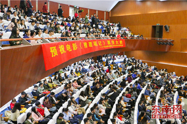 东南网11月20日讯(通讯员 陈若卉/文 陈海月 陈仁胜 刘泽萌 何静怡/图)11月19日,由福州大学学生社团联合会承办的“电影《推理笔记》点映暨主创见面会”在福州大学图书馆博学厅内举行。导演张天辉亲临现场,与福大学子近距离接触互动。