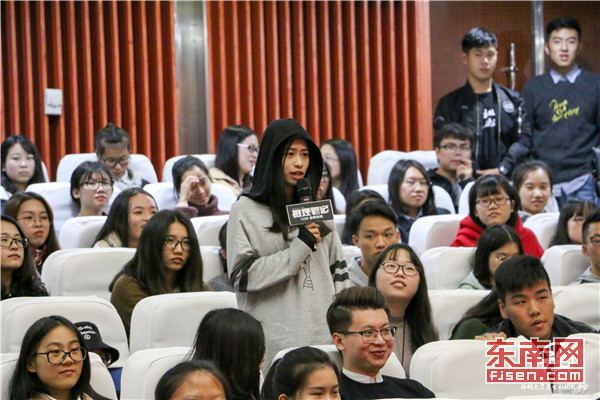 电影放映结束后,导演张天辉在热烈的欢呼声中登台与观众们亲密互动。导演谈及自己也是福建人来到福州就有了回到家的温暖感觉,并在现场寻找老乡。不仅用家乡话和同学们打招呼还现学了福州方言,现场充满了欢声笑语,气氛轻松融洽。