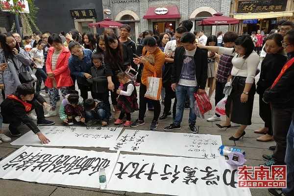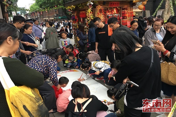 东南网11月20日讯(通讯员 陈丹榕)为了响应十九大“坚定文化自信,推动社会主义文化繁荣兴盛”的号召,11月16日下午,福大学子们来到了带有红色印记的三坊七巷,用传统书画艺术的形式来献礼十九大,书写属于自己的青春篇章。