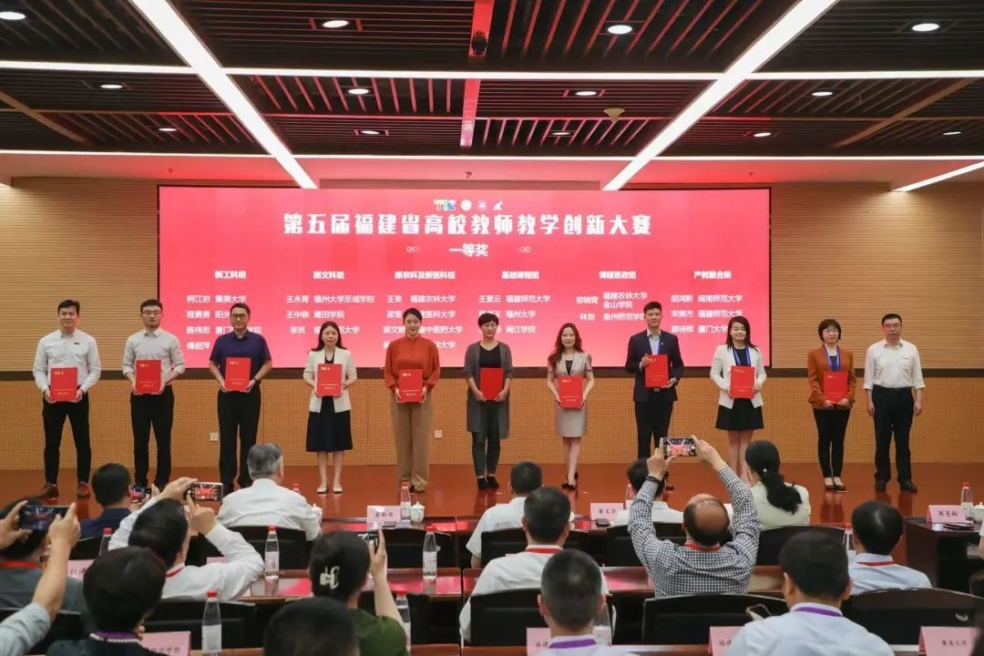 福州大学至诚学院王永菁老师(左5)荣获第五届福建省高校教师教学创新大赛文科组一等奖