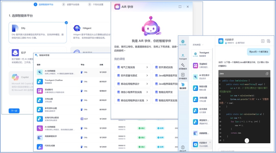 作为福建省第二批省级“智慧校园试点校”,福州大学至诚学院推出“至诚智学、至诚智教、至诚智问、至诚智管、AI应用中心”五大智能场景,改变了AI仅用于知识问答的局面。学院的智能体应用中心平台,创新性地将本地化大模型、网络大模型与垂直行业相结合,构建混合AI模型,并依托本地知识库与知识图谱,全方位赋能教学。