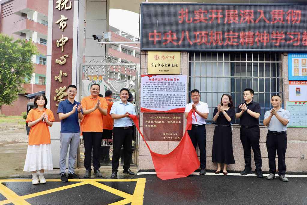 福州大学学生社会实践基地(2025—2028年)揭牌仪式在抚市中心小学举行。永定区教育局、抚市镇政府及学校相关领导共同见证仪式。揭牌礼成,标志福州大学与抚市中心小学开启深度合作新阶段,为未来三年两校共育时代新人、深化交流实践奠定了坚实基础。