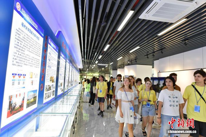 8月17日,参加第二十四届“汉语桥”世界大学生中文比赛全球决赛,来自全球100多个国家的125名选手走进福州大学参观交流。图为外国大学生在校园内参观。中新社记者 张斌 摄