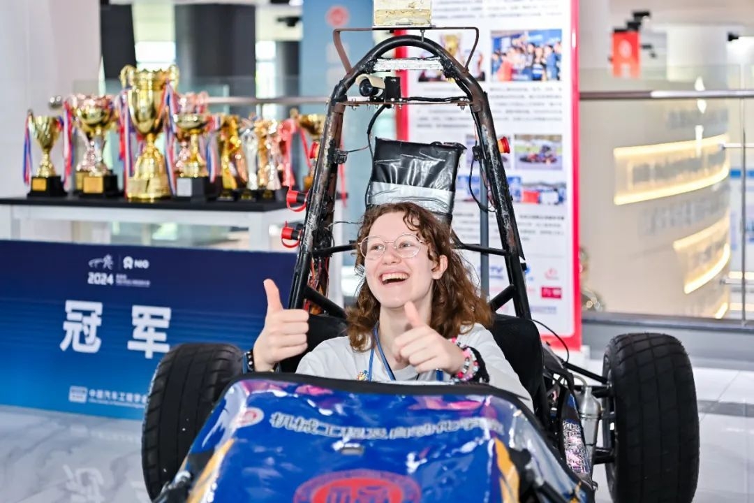 澳大利亚选手莫蔚岚对方程式赛车最为好奇,坐进“冠军车”的座舱里,她仿佛也体验了一次速度与激情的快乐。