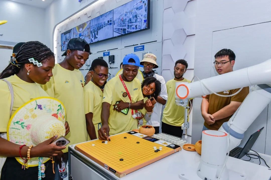 机械臂挥毫书写“天下一家”,AI系统与人类棋手深度对弈,智能喷绘设备展示自动生产全流程,在先进控制技术研究中心,“汉语桥”选手们一览中国高校的智能制造技术,亲身感受科技与人类智慧交融的魅力。