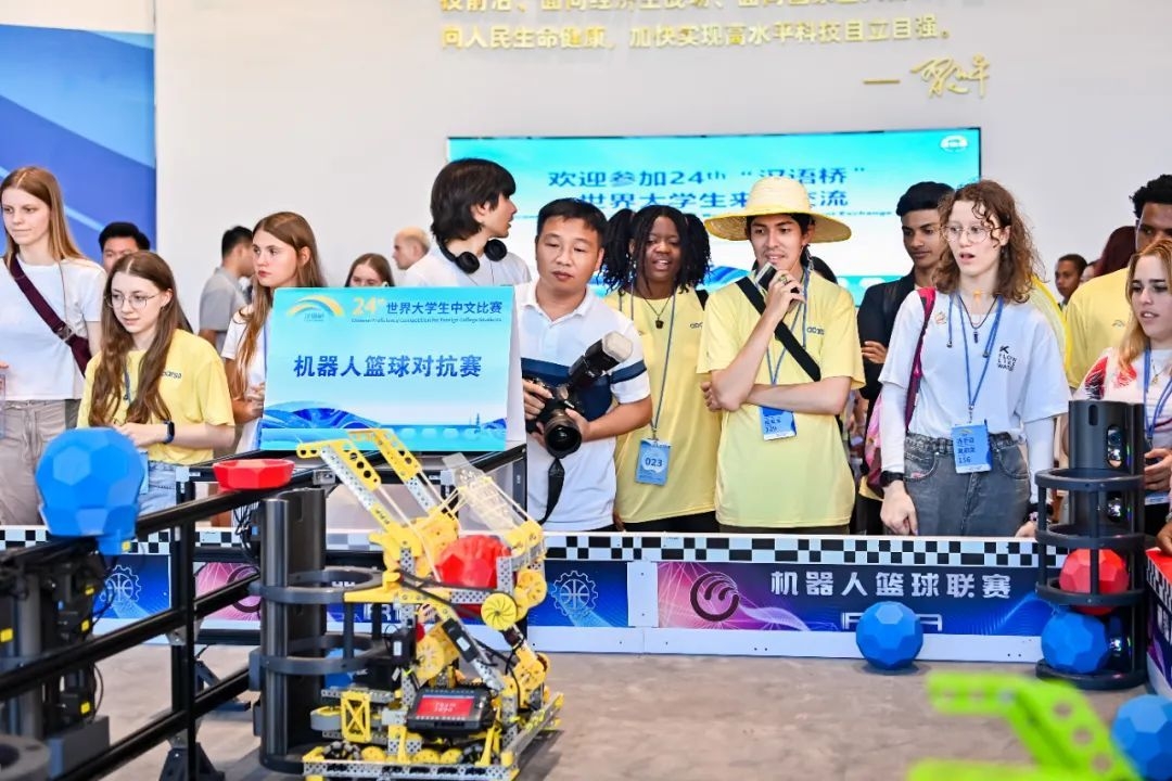 走进大学生创新创业展馆,活力与灵感扑面而来,从方程式赛车的精妙构造,到智能无人机的灵活身形,每一项成果都凝结着青年团队的智慧与努力,“汉语桥”选手们沉浸式观看体验,惊叹于这群学子的创新创造精神。