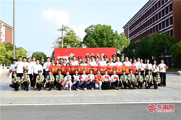 国旗下讲话环节,福州大学先进制造学院与海洋学院学生代表余奇以“新时代青年的家国担当”为主题,结合祖国76年发展成就与青年使命分享感悟。“在祖国生日这天,我们既是辉煌成就的见证者,更要做民族复兴的建设者。”随后,大中小学生代表联袂演绎诗朗诵《盛世华章,吾辈荣光》,激昂文字与真挚情感交织,将对祖国的祝福融入其中,成为思政一体化建设的鲜活实践。