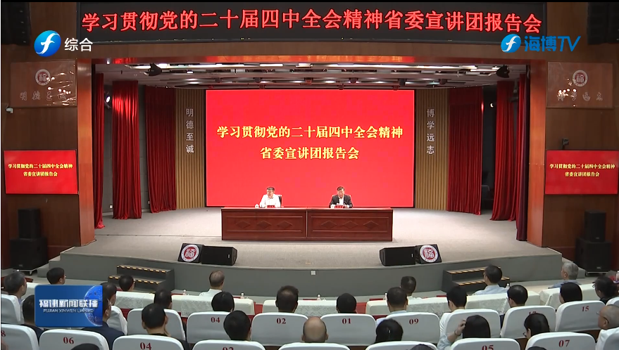 根据省委统一安排,7日,学习贯彻党的二十届四中全会精神省委宣讲团报告会在福州大学举行。省委宣讲团成员,省工信厅党组书记、厅长陈建业作宣讲报告。