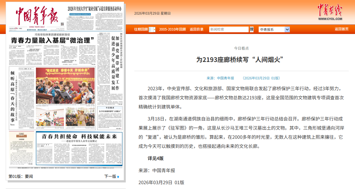 中国青年报:https://zqb.cyol.com/pc/content/202603/29/content_424003.html、https://zqb.cyol.com/pc/content/202603/29/content_424020.html(转第4版)