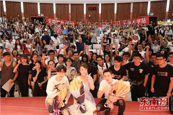 东南网9月28日讯(通讯员 陈云裳/文 何雨曈/图)“天南地北,笑在一起”。9月27日,由福州大学学生社团联合会承办的“《羞羞的铁拳》电影试映会暨主创见面会”在福州大学图书馆明德厅内举行。主演马丽、导演宋阳、张吃鱼亲临现场,与福大学子进行近距离互动。