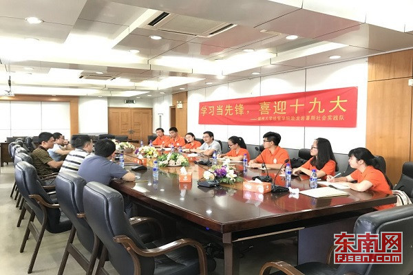 在社会实践期间,实践队积极联系在新罗区政府的校友,前往当地开展“学习当先锋,喜迎十九大”福大选调生代表座谈会,学习基层迎接十九大先进工作先锋模范,倾听优秀选调生工作者的心声,深入了解选调生的工作情况。数名选调生以自己基层的实际经历及工作感悟,从在校到工作的角色转变角度,为在校生提出了许多的建议,希望能帮助在校生更好地完成从一名学生到工作者的衔接,鼓励在校大学生毕业后能积极投身基层,以己之力,助力基层建设。基层是最能磨砺锻炼能力的地方,也是培养杰出人才的地方,广大青年应积极响应党和国家的号召,到基层去奉献青春,到祖国最需要的地方去,努力在实现中国梦的伟大实践中创造自己的精彩人生。