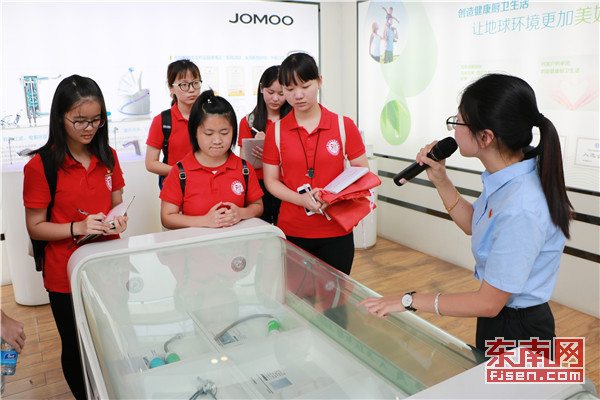 调研学习,探寻海丝活力新姿。8月31日上午,队员们来到被誉为国内大型的卫浴洁具产品制造商和供应商之一的九牧集团参观。九牧集团本着尽善尽美,精益求精的质量理念,每个固件都要经过四万三千八百次检测,产品拥有保修十年的品质保证。集团在产品创新的过程中也十分注重党建文化的传承,集团鼓励党员积极参与“两学一做”学习教育,本着“向优秀看齐,当九牧先锋”的经营理念,开设员工技能岗位评比,设立员工图书角,增进员工对党基本常识的了解。