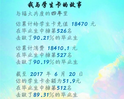 “我借书量居然超过98.52%的同学!”“惊了,我这四年原来补了5次学生证!”又是一年毕业季,福州大学为2017届毕业生献上一份与众不同的毕业纪念册,用大数据回首四年,记录大学青春。