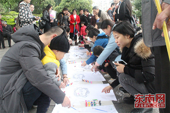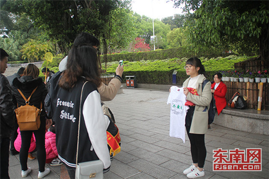 东南网3月27日讯 3月26日上午9点,金牛山公园叠水广场上热闹非凡。地面上一条长长的白色画布分外引人注目,许多市民都专注地在上面,给手中的白色T恤涂色。