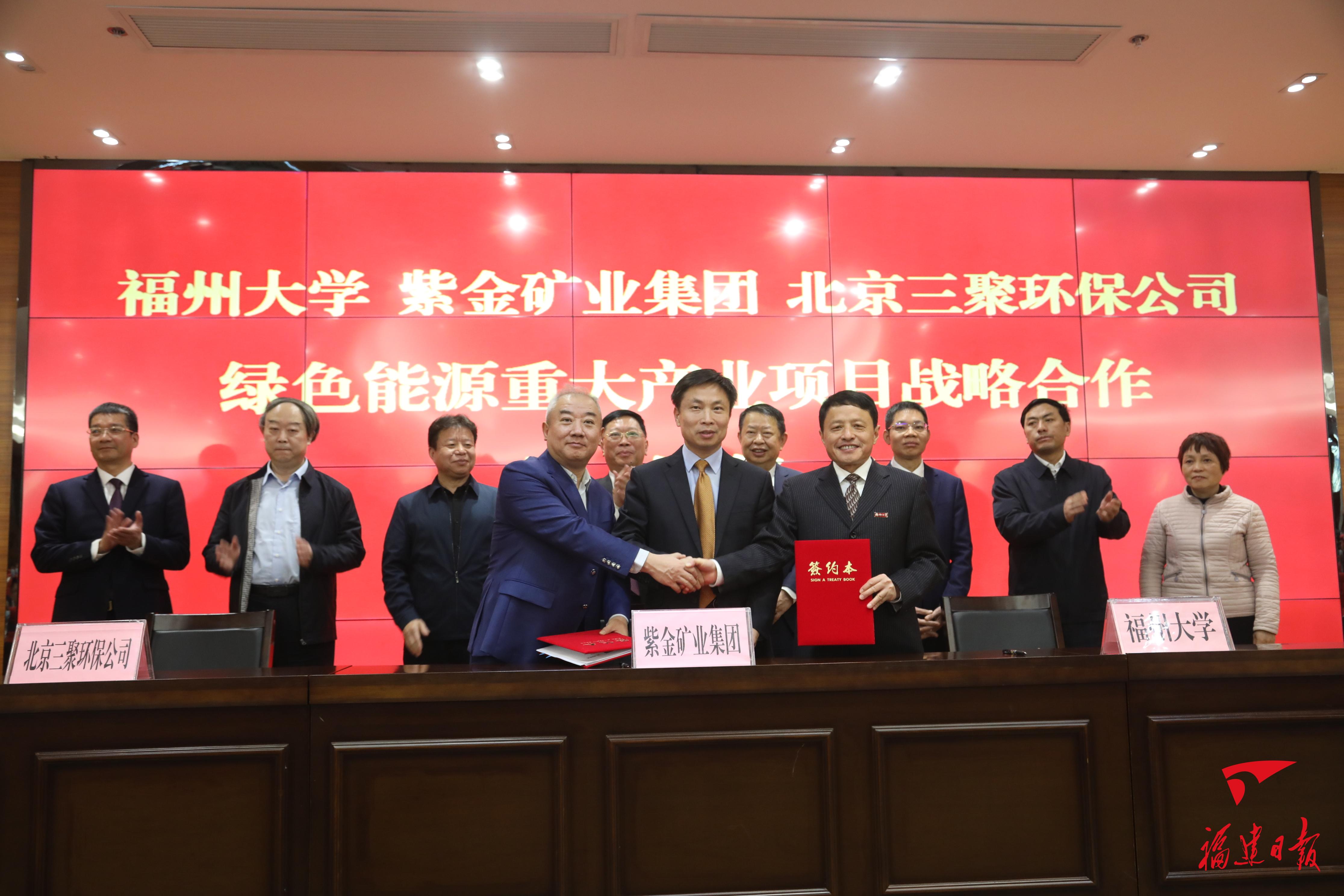 福建日报·新福建客户端12月10日讯(记者 储白珊)10日,福州大学、北京三聚环保新材料股份有限公司、紫金矿业集团股份有限公司在福州举行绿色能源重大产业项目战略合作签约,成立合资公司,创建国内首家“氨-氢能源重大产业创新平台”,围绕“氨-氢”绿色能源重大技术开展深度合作,加快推动科技成果转化。
