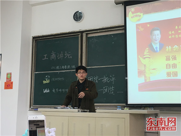 东南网3月20日讯(本网校通社大学生记者王睿)为迎接建团九十五周年,落实团中央关于扎实开展“三会两制一课”的要求,2016级工商管理班进行了了一次以“坚定信仰,排除干扰,不忘初心,继续前进”为主题的团课。
