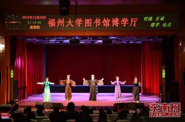 东南网12月30日讯(通讯员 郑绍东 张雪茹)“桃李自妍莺自飞,春到人间藏不住……”12月29日晚7时,在福州大学博学厅内,一声清悠婉丽的戏腔拉开了 “高雅艺术进校园”越剧专场的序幕。原来,这是福建省芳华越剧团携其原创剧目《潇潇春雨》走进福大,带给了福大师生的年末文化大礼。