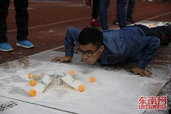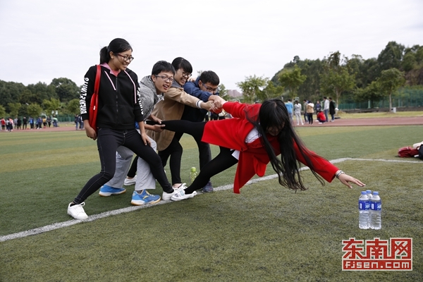 东南网11月11日讯(通讯员 郑绍东 胡梃芳 李欣/文 本网校通社大学生记者 郑嘉豪/摄)“轻吻大地”、“为你折腰”、“越狱”....11月10日,一边是热火朝天的福州大学第45届田径运动会,另一边,一群人却在福州大学三区操场上玩嗨了。原来这是福州大学学生社区助学中心、易班工作站、学生社区委员会共同主办的社区趣味运动会。和传统的专业运动会主要以竞技为主的目的不同,趣味运动项目修改了竞技运动规则,加之以更多的趣味成分。