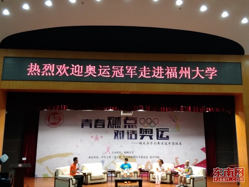 据悉,此次见面会以访谈形式进行,受到福大学子追捧。见面会正式开始前一小时,会场就已座无虚席。当奥运冠军出场时,学生们纷纷挥舞着手中的五星红旗,呐喊着“热烈欢迎奥运冠军的到来”。