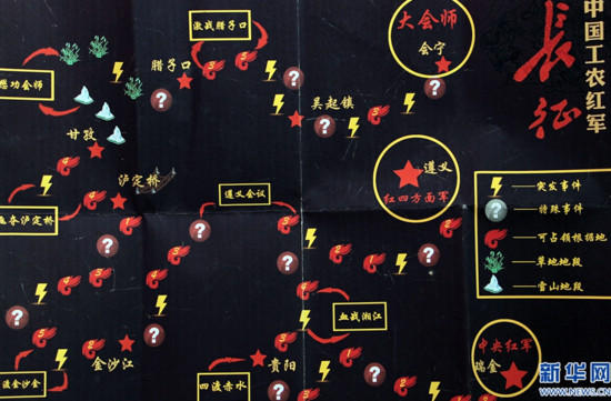 “我从来没想过原来可以把长征弄成桌游形式,还能这么好玩。不过走到大会师地点真的用尽了洪荒之力啊。”经济与管理学院的陈嘉丽由衷感叹,“因为是以小组形式进行游戏,所以大家都在专心思考和讨论,玩的很high,希望下次有更多有趣的游戏。”记者注意到,游戏地图的设计几乎完全按照史实,血战湘江、遵义会议、巧渡金沙江、飞渡泸定桥、激战腊子口等著名的大事件都囊括其中,道具卡和事件卡的设计以长征过程中那些经典的人物形象为背景,如《丰碑》中于冰天雪地中安然离去的军需处长;《金色的鱼钩》中艰难咽下鱼刺的老班长;《倔强的小红军》中善良淳朴的小红军等。