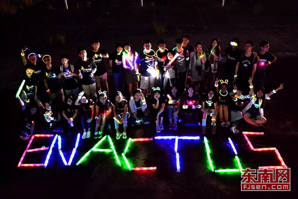 东南网10月18日讯(本网校通社大学生记者 陈雯璇 通讯员 林雅诗 王燕芳/文 高原/图)10月14日晚,福大生活三区田径场闪烁着一片抢眼的荧光,一群穿戴荧光发箍和手环的学生在一声哨响后冲出了起跑线。这是由福州大学创行团队主办的联合福建、江西两地九所高校的荧光环校夜跑活动,共计吸引两千余名参与者。