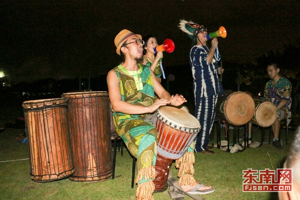 东南网9月23日讯(本网校通社大学生记者 林钰松)22日晚,福州大学三区风雨操场举办了一场草地沙龙分享会,来自福建省唯一的专业曼丁音乐工作室“木木之家”的乐手们在现场进行曼丁音乐LIVE演出,他们唱歌、跳舞、打鼓,现场十分火爆。